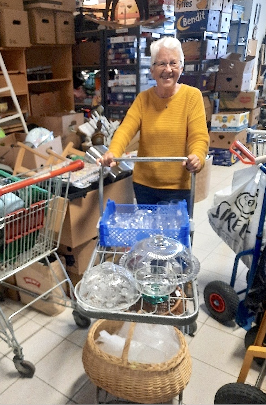 Så er det en som tar seg av alt metall som er skadet eller usalgbart av andre grunner. Det blir grundig sortert. Når lagerrommet for metall er fullt, blir det levert til metallgjenvinning. Det siste lasset resulterte i 18.980 kroner.