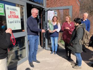 1. april i fjor vanket det åpningskake da butikken ble "klippet" inn på Lilleborg. Det blir nok mer kake under ettårsjubileet!- Og hvordan skal gjenbruksbutikken markere ettårs-feiringen nå over påske?De ulike april-dagene vil være ganske forlokkende for kundene våre. Det blir 50%-dager, hjemmebakte kaker og kaffe, vekslende tilbudsbord, og kanskje også noen aktiviteter ute i vårsola. Og åpningsdagene er som tidligere: tirsdag-lørdag fra kl 12 til 16.