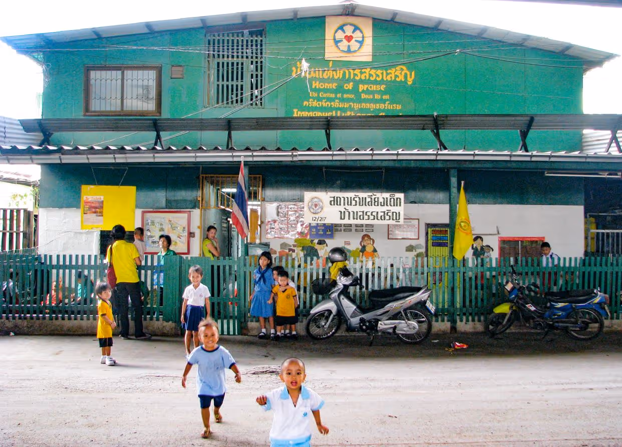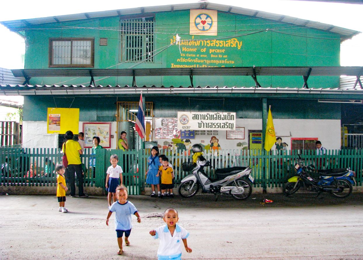 Barnehagen og fritidsklubben her har halde barn unna lim og leia mange til vidare utdanning. I 23 år har Anne Storstein Haug fått vere med på dei viktigaste åra i eit barns liv, i eit land utan barnevern, der «mine minste» alltid trekk det kortaste strået.Her kan du støtta arbeidet til NMS i Thailand!Anne har berre følgt draumen og eventyrlysta. At det kunne brukast i misjon, var for godt til å vere sant.Ho verkar like nyfiken, impulsiv og uredd som barna ho møter på jobb. Like fargerik som kleda ho alltid kjøper brukt. Ho har ein liten dyrehage heime, elskar kunst og musikk og skårar høgt på synleg entusiasme. Det boblar når ho snakkar om Bangkok, heimen gjennom 23 år. Ein treng knapt stille spørsmål. Kor kjem denne brannen frå? Eit nedarva omsorgsgen frå faren som var prest, kanskje. Reiselyst og ei ubestemmeleg dialekt etter ein barndom med mykje flytting. Perspektiv og sjølvstende etter ei tid aleine på eit reumatismesjukehus, langt vekke frå familien. Men det som skal prege livet hennar for alltid, er ein Bangkok–tur. Ho fell pladask og blir liggande, skriv eit brev til NMS for å spørje om dei kan bruke henne, sjølv om ho absolutt ikkje er «den seriøse misjonær–typen.»Ein barndom på hjul Som 11-åring får Anne ein reumatisk sjukdom som tvinger henne til å slutte med alt ho elskar.– Eg måtte legge fotballen på hylla. I fleire år budde eg på eit reumatismesjukehus i Oslo i fire veker om gongen. Mamma følgde meg, men måtte snart heim for å ta seg av søskena mine, byrjar Anne.Ho er mykje aleine, men ei tante og ein onkel i byen kjem henne til unnsetning. Dei auser på med omsorg og tek henne med på kjekke ting.– På sjukehuset møtte eg mange som hadde det langt verre enn meg sjølv. Det opna horisonten min. Kanskje påverka det draumen om å hjelpe barn som har det vanskeleg, undrast Anne.Ho skildrar oppveksten som trygg og god. Den var flyktig, og det å vere prestedotter var ikkje alltid like kult, men barndomsheimen var open og det lukta ofte nysteikt brød.Dei siste 23 åra har ho sett kva det motsette kan føre til. Ho tenker på dei som ikkje ende opp som solskinshistorier i MT. Dei som vaks opp med rus og mishandling og som sjølve bukka under for det same, for så å gi det vidare til neste generasjon. Det finst ikkje vanskelege barn. Berre barn som har det vanskeleg.– Likevel kan tida i det grøne huset, Lovsangshjemmet, i barnehagen og fritidsklubben der, påverke dei positivt også seinare i livet. Her vart dei møtt med omsorg og kjærleik i formative år, seier Anne.Som førskulelærar veit ho kor viktige dei tre første åra i eit liv er. Ho har ikkje tal på kor mange ho har mata, leia, trøysta og hatt på fanget i løpet av dei 23 åra i Thailand. Enkelte har ho kontakt med, dei fleste veit ho ikkje noko om. Kanskje tenker dei på den knallgrøne barnehagen når livet er tøft? Kanskje hugsar dei at den kjærleiken dei møtte der, den finst og bankar stadig på.Fall og kall Anne utdannar seg til førskulelærar, men når ho får jobb i ein privat barnehage i Haugesund full av ressurssterke familiar, kjenner ho på ei rastløyse.– Eg treivst godt, men kjende likevel at det ikkje var der eg skulle vere , fortel Anne om barnehagen som i dag støttar Lovsangshjemmet i Bangkok.Søstera Kari er NMS–misjonær i Thailand på denne tida. Anne som knapt har vore i utlandet før, bestemmer seg for å besøke henne, men er ikkje budd på det som no skjer.– Eg fall pladask for Thailand, ler Anne og klarer ikkje heilt skildre kvifor.– Det var noko med stemninga, livsstilen og folka. Det var så fritt, ikkje noko A4–liv. Eg berre elska alt ved dette.I bagasjen ligg draumen ho har hatt så lenge ho kan huske. Draumen om å gi barn ei betre framtid.– Eg hadde aldri tenkt at eg kunne bli misjonær, innrømmer 54–åringen som likevel har bore den tittelen i 23 år og ikkje er ferdig enno.– Misjonær forbant eg med slangeskinn, plansjar og lysbilete, ler ho.Men i Thailand ser ho at det er meir enn som så. Anne skriv ein open og ærleg søknad til NMS. «Eg er ingen typisk seriøs misjonær, men ein førskulelærar som vil jobbe med barn som har det vanskeleg og som har blitt forelska i Thailand.»Eventyrlysta er nesten forstyrrande. For det kan vel umogleg vere så «lett» å bli misjonær? Skal det ikkje koste?– Men dåverande generalsekretær, Kjetil Aano, forsikra meg om at det også kan vere Gud som legg eventyrlyst ned i oss. Då fekk eg ro, men også ein ny jobb.Frå BBC til Bangkok Eventyret startar med engelskstudiar i naturskjønne Whitby, der «Med hjarte på rette staden» er spela inn.– For eit privilegium å få lønn for å studere i ein så vakker by. Eg har vore utruleg heldig, seier Anne entusiastisk.Ho forelskar seg i Whitby, i musikkmiljøet, naturen og misjonærdraumen ho er på veg til. Og då BBC kjem på besøk for å intervjue studentane om byen, er det ja–mennesket Anne som blir intervjuobjekt for det britiske kringkastingsselskapet.– Så ein stad i BBC–arkivet finn du altså meg, «ein singel 30–åring som hadde ofra alt for å jobbe i slummen i Thailand», seier Anne og ler av den tabloide vinklinga. Ho kjenner seg tvert om som verdas heldigaste.Bangkok Då Anne landar i år 2000 er Bangkok like fantastisk som ho hugsar det. Likevel tek det tid før ho finn sin plass i eit misjonærmiljø der dei fleste har familie.– Eg kjende behov for å finne folk som hadde dei same interessene som meg, så eg blei med i ein bokklubb, vart kjend med eit thailandsk kunstmiljø og gjekk på konsertar. Eg fekk vener og eit fantastisk liv på fritida.Innimellom thai–studiane tenker ho mykje på kva tida etterpå vil bringe. Kva type misjonær skal ho bli? Blir det slangeskinn eller kan ho vere seg sjølv?– Allereie før eg var ferdig med språkskulen, spurde misjonær og prest Dag Johannessen om eg ville vere med og starte ein barnehage i eit fattig distrikt med store sosiale utfordringar.An