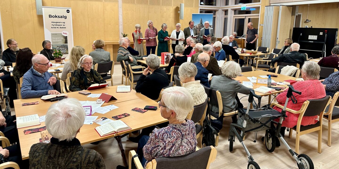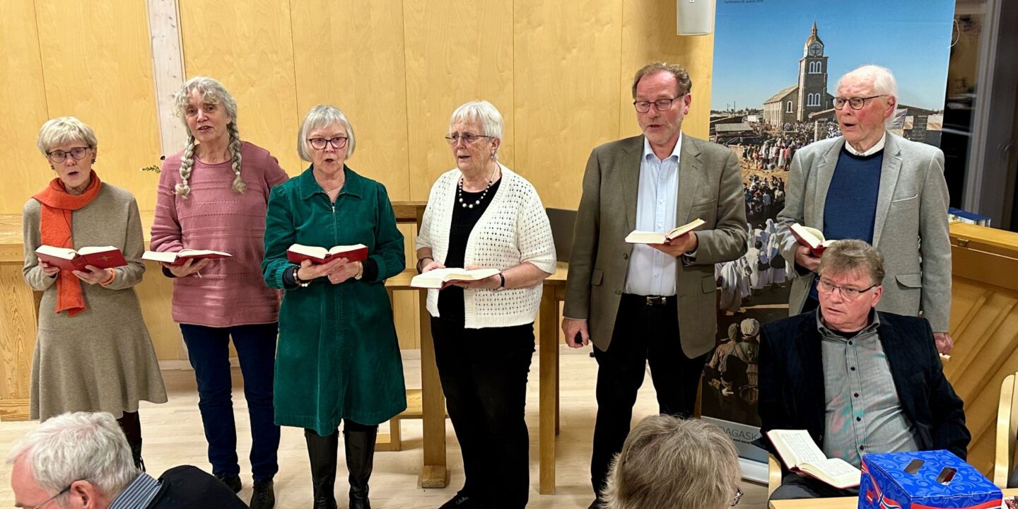 Den tallrike forsamlingen fikk også lære en nyskrevet misjonssang i Hauges ånd. En forsangergruppe bidrog med frisk sang og selvsagt ble pausen brukt til boksalg, salg av gjenbrukslys, mat og prat og loddsalg. En fin og inspirerende samling!