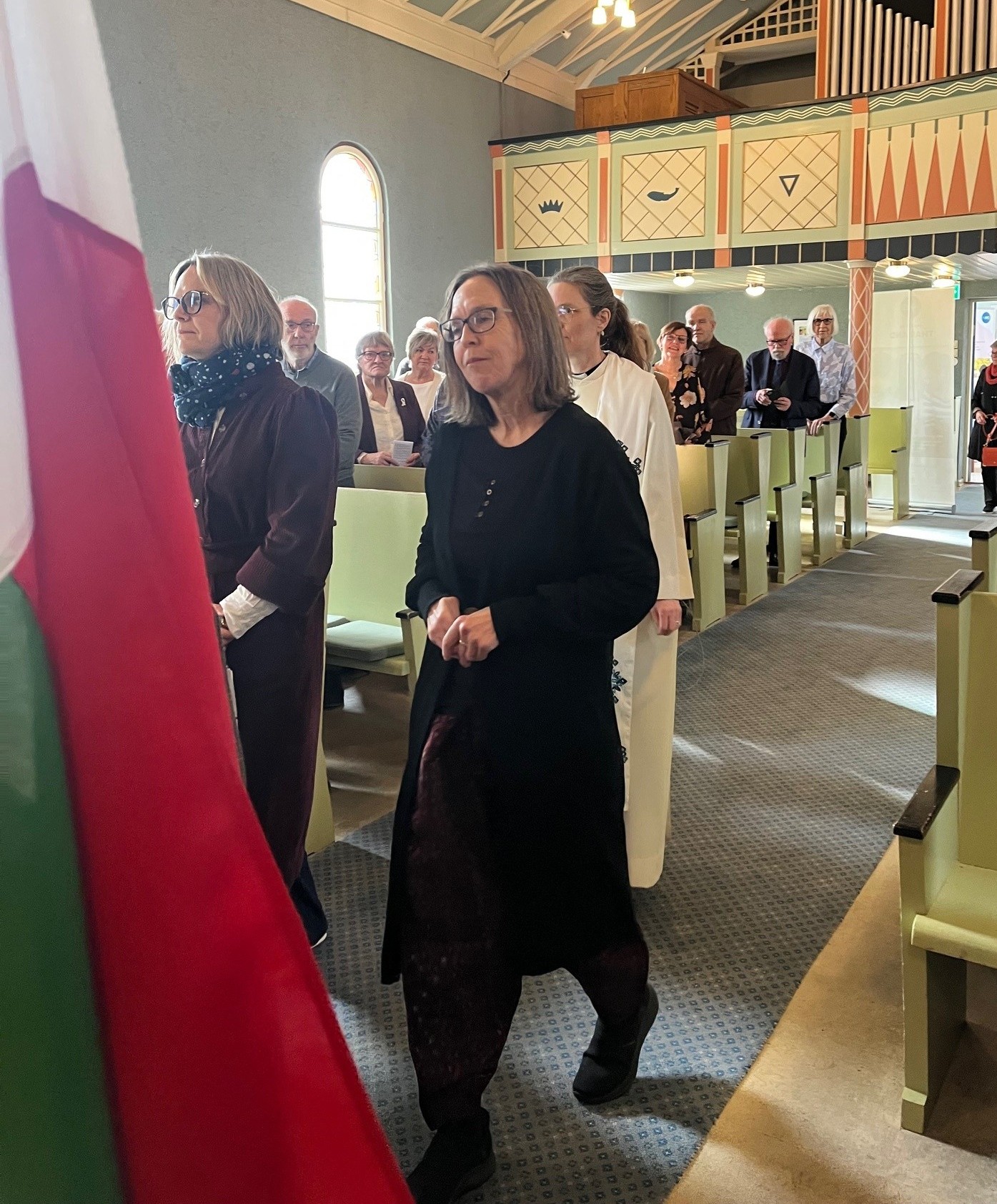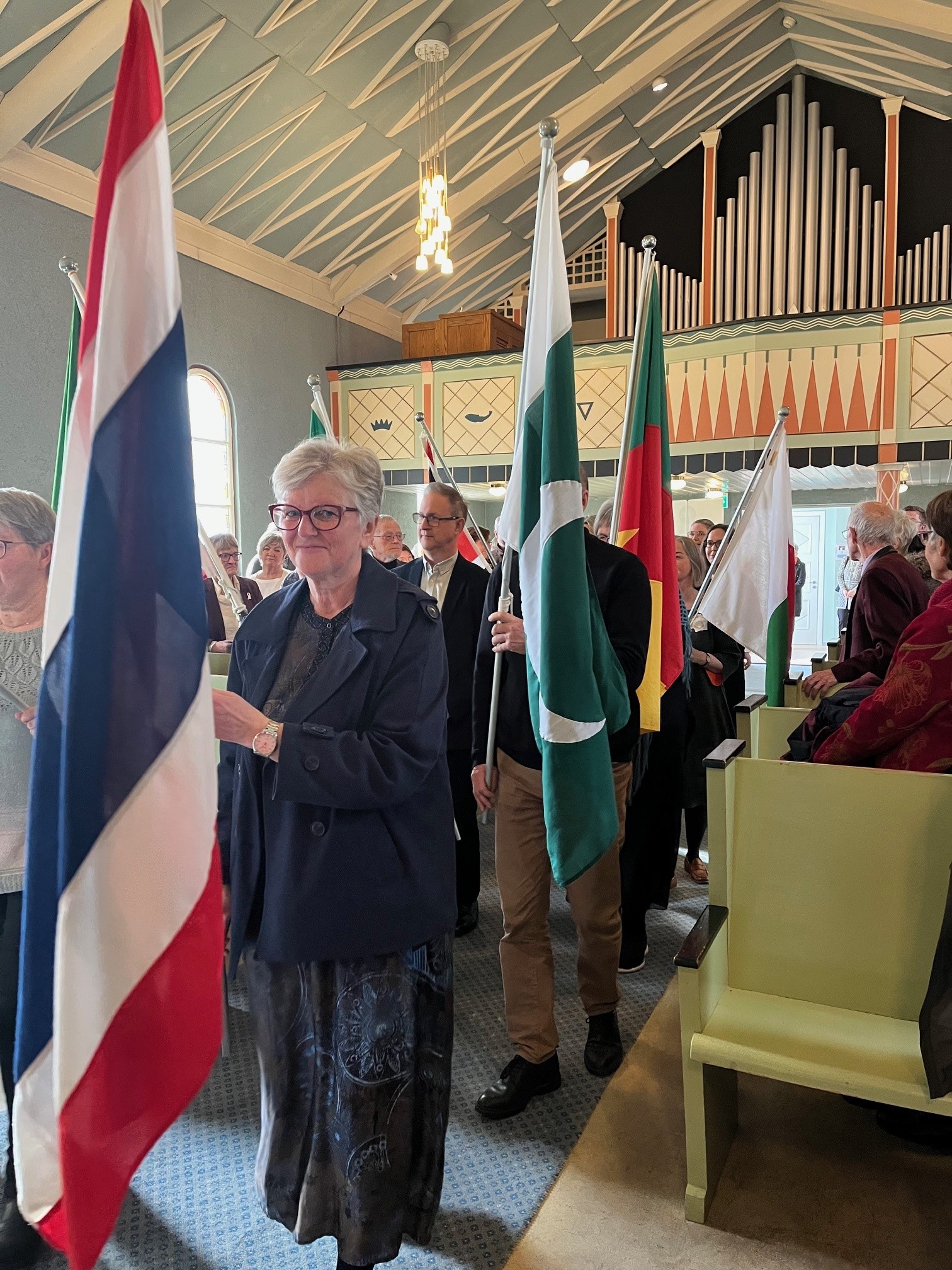 Under gudstenesta fekk vi òg nyte vakker song framført avApril, akkompagnert av Jorunn Bakke Orvik. Inngangsprosesjonen med dåpsbarn ogflaggborg understreka det globale perspektivet som prega heile dagen.